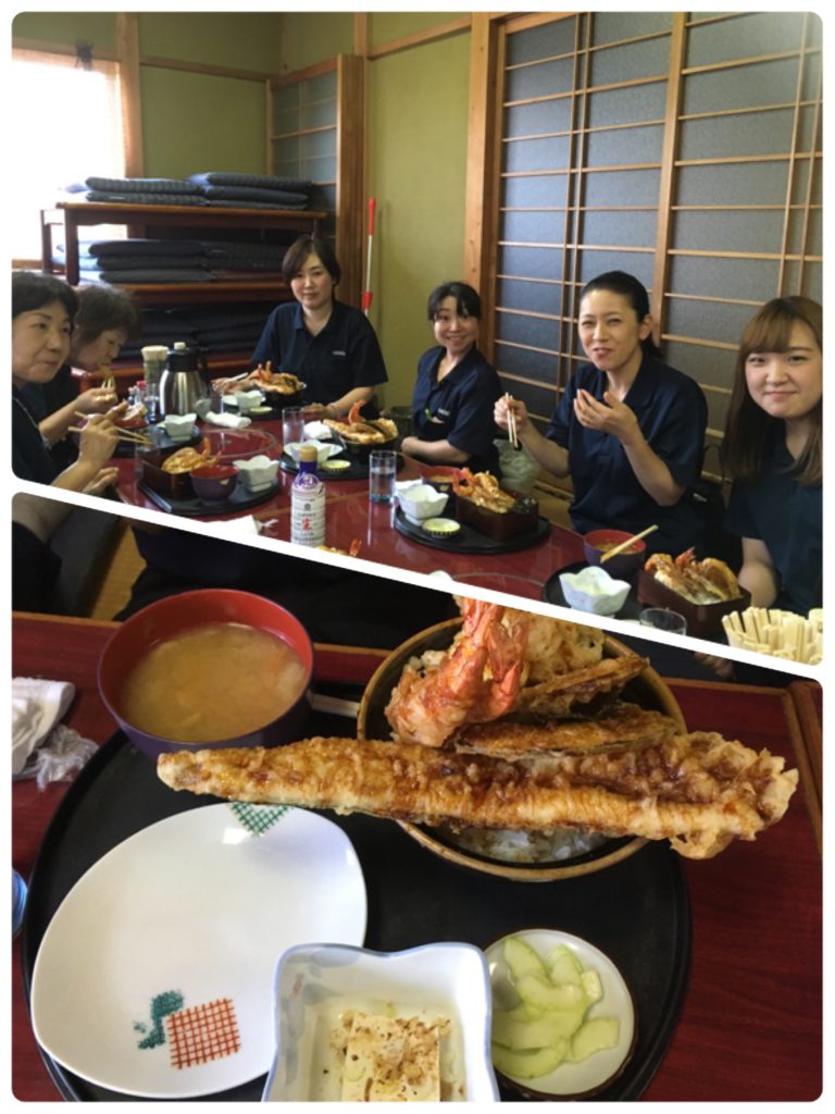 今日のランチ✨ 2018.8.3 今日は、会社の近くにある食堂へランチに行きました。 みんなで注文したのが『利根川天丼』。 穴子天ぷらが想像以上に大きくてビックリ‼ さすがにみんな完食はできませんでしたが、 楽しく、美味しくいただきました????