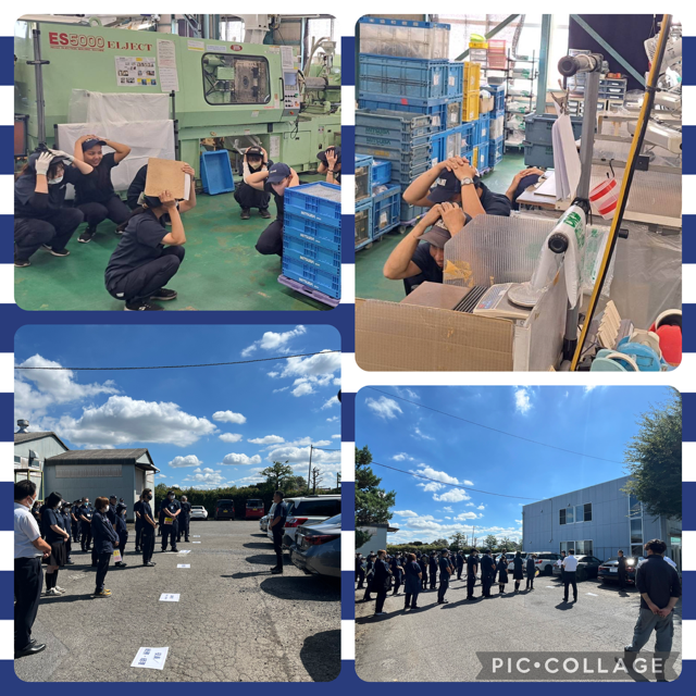 緊急事態訓練 2024.10.8 先日行った緊急事態訓練の様子です。 『訓練を通じて防災に関する意識を高め、正しい知識や行動を身に着ける』。 緊急地震速報が発生したら姿勢を低く、頭を守る、動かないの訓練の様子。 無事に全員避難できました!!