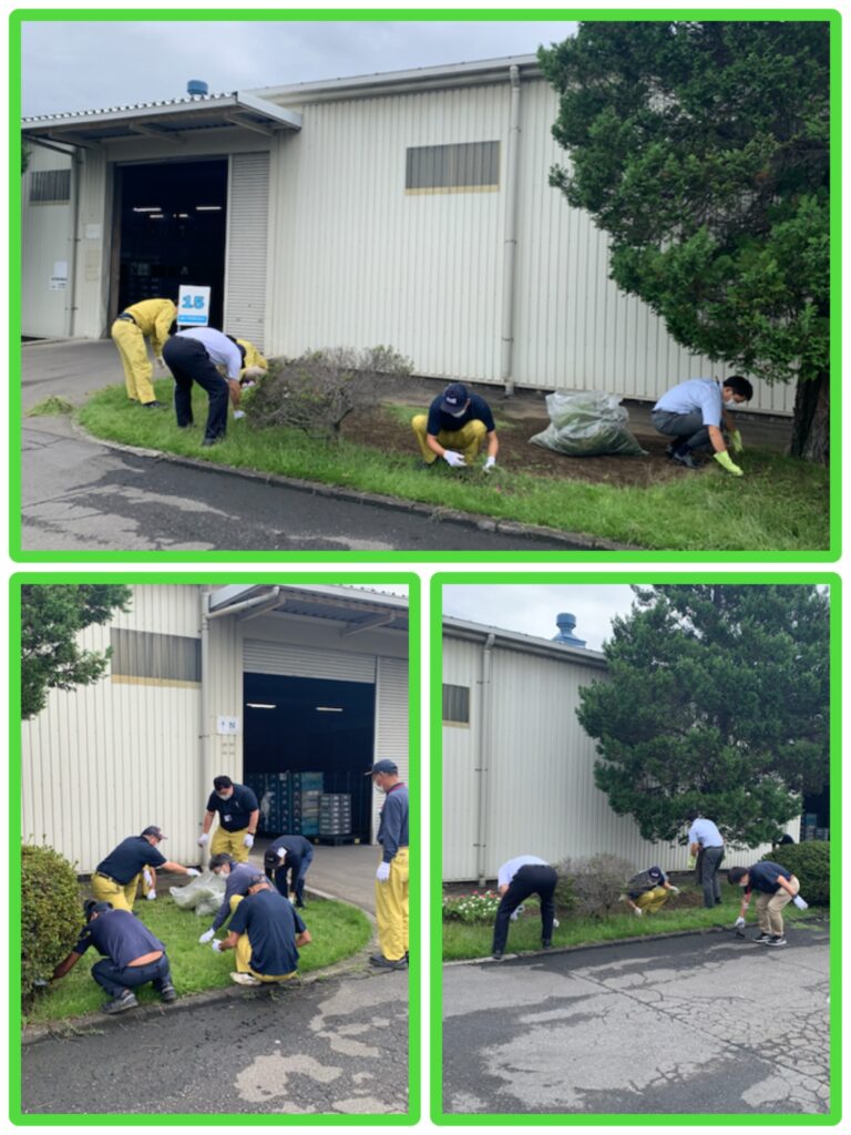 今月の朝礼は、全員で敷地内の除草作業をしました!!!雨が続いていたので、草は元気に伸びていましたが、30分ほどの時間でキレイになりました。