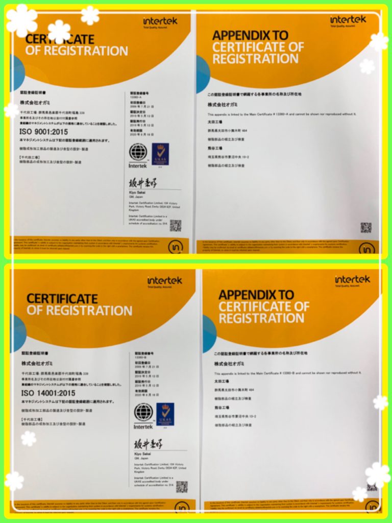 ISO審査機関を移転し、5/13付で新しい認証登録証が発行されました。