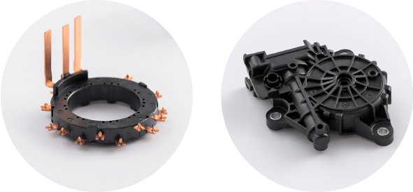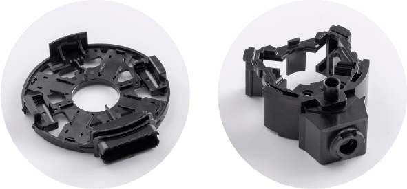 樹脂成形は熱可塑性と熱硬化性の射出成形の加工を行っています。硬化性プラスチック生産においての経験と対応力においては、各所より評価をいただいています。