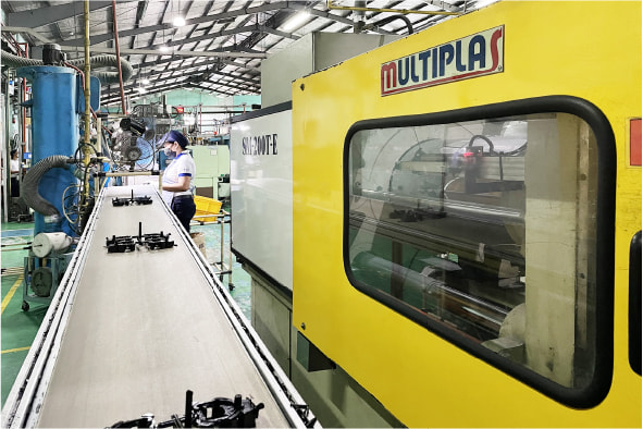 熱硬化性樹脂は成形加工時の加熱によって、「硬化」という不可逆反応を起こします。そのため、再加熱しても元の形状に戻らない点で、熱可塑性樹脂と大きく異なり、耐熱性、機械的性質、電気的性質、硬さ、寸法性度に優れる特徴があります。フィリピンオガミコーポレーションにて、金型製作と成形設備を導入しています。