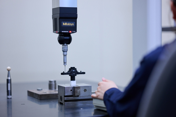CNC三次元測定機を使用し高精度な測定を行います。製品保証だけではなく金型部品の精度確認のためにも使用します。